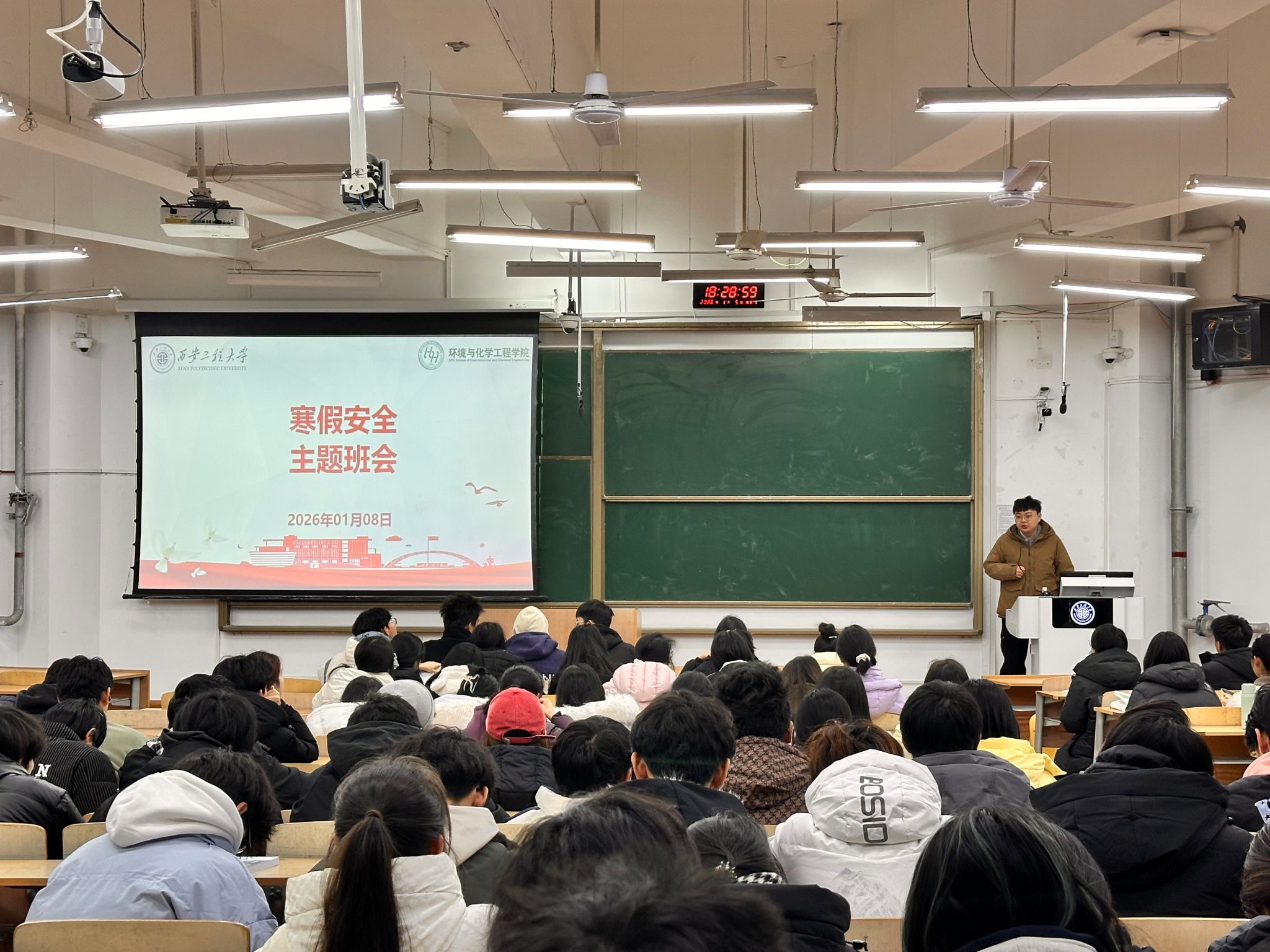 为切实提升学生寒假期间的安全防范能力,保障全体学生度过一个平安、健康、充实的假期,1月8日,2025级全体学生在教学楼B133教室集中召开了寒假安全主题班会。会上,辅导员吕国正首先就离校事项作出具体安排,要求同学们离宿前务必整理好个人物品,彻底切断电器电源,清理垃圾、收回衣物,全面排查并消除宿舍安全隐患。随后,围绕消防安全、外出安全、食品安全及网络安全等方面,吕国正结合典型案例展开讲解,提醒同学们要自觉...