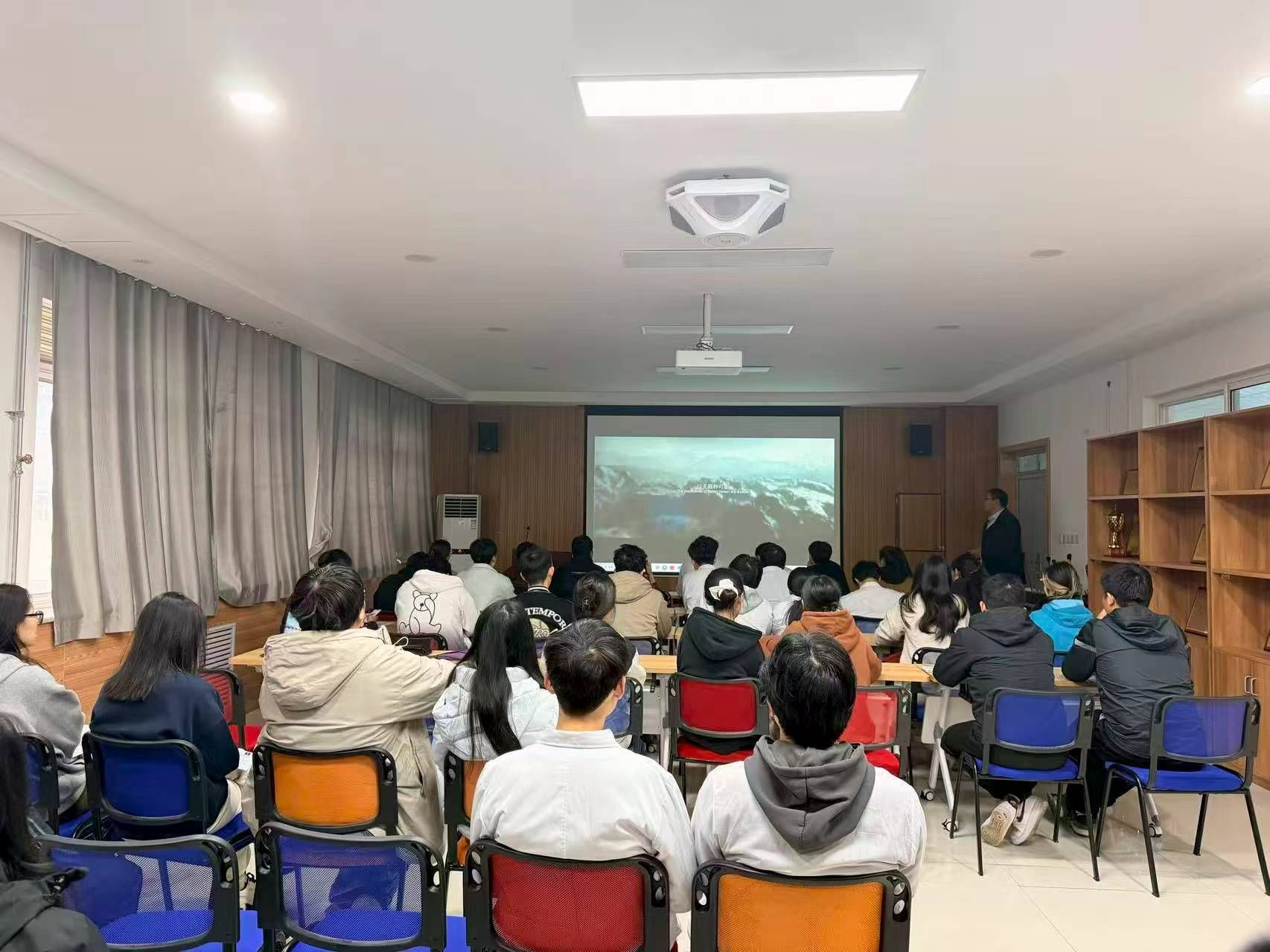 12月5日下午,我院百余名研究生齐聚507报告厅,共同参与"光影铸魂"爱国主义主题教育活动。院党委副书记林定武出席活动并致辞,强调"要将科研报国的信念融入光影感悟中"。