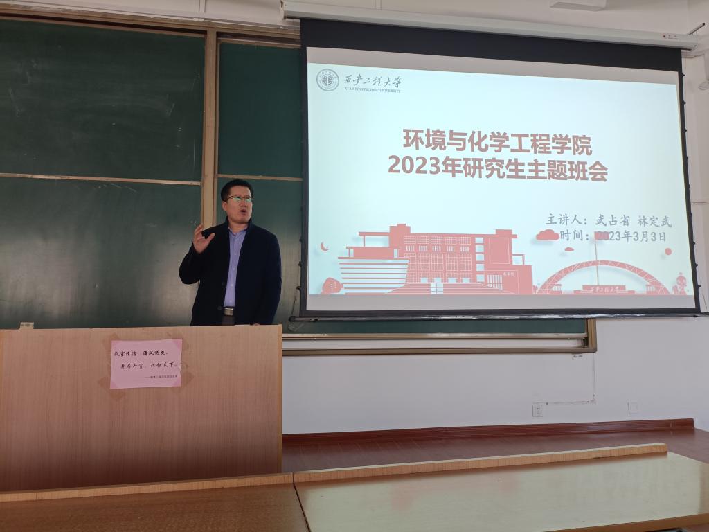 2023年3月3日,我院在临潼校区教学楼B-138举办了新学期研究生主题班会。出席会议的有学院党委副书记林定武、副院长武占省、辅导员盖潇宇及环化学院全体研究生。