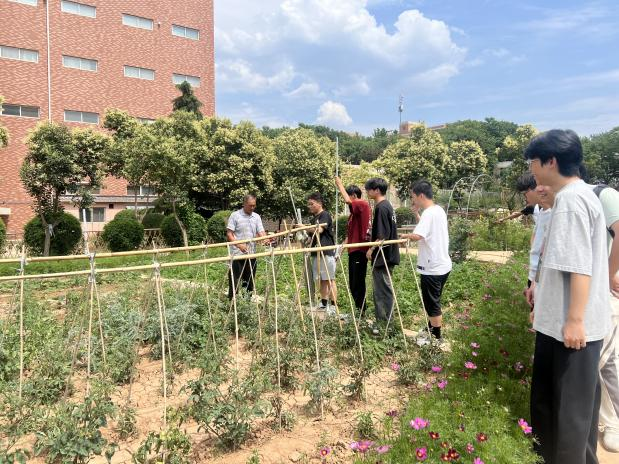 清理后的土地,成为希望的“培养皿”。随着季节更迭,同学们在这里种下菠菜、豆角、油菜、番茄,以双手为器,以汗水为媒,在日常管护中观察生命成长,理解生态循环。“耕读”不止于劳作,更是心灵的滋养——从春播到秋收,作物的每一段生长周期,都映照着学子们的成长足迹。在躬身实践中,他们逐渐“合成”出责任、耐心与对生命的敬畏