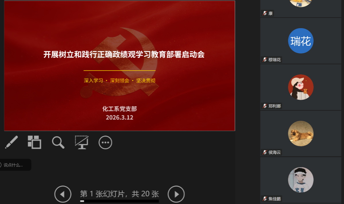 为深入贯彻落实党中央关于开展树立和践行正确政绩观学习教育的重要部署,切实把全体党员的思想和行动统一到习近平总书记重要论述和党中央决策部署上来,3月12日,化工系党支部结合教师工作实际,采取线上线下相结合的方式,召开了树立和践行正确政绩观学习教育部署启动会。