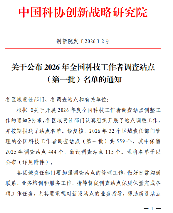 全国科技工作者调查站点是中国科协统筹管理的国家级平台,聚焦科技人才发展研究、支撑国家科创决策,重点布局于高水平研究型大学等科技工作者集中的单位。此次我校成功入选,充分体现了学校在科技人才汇聚、科研组织实施以及服务区域创新发展方面的综合实力。