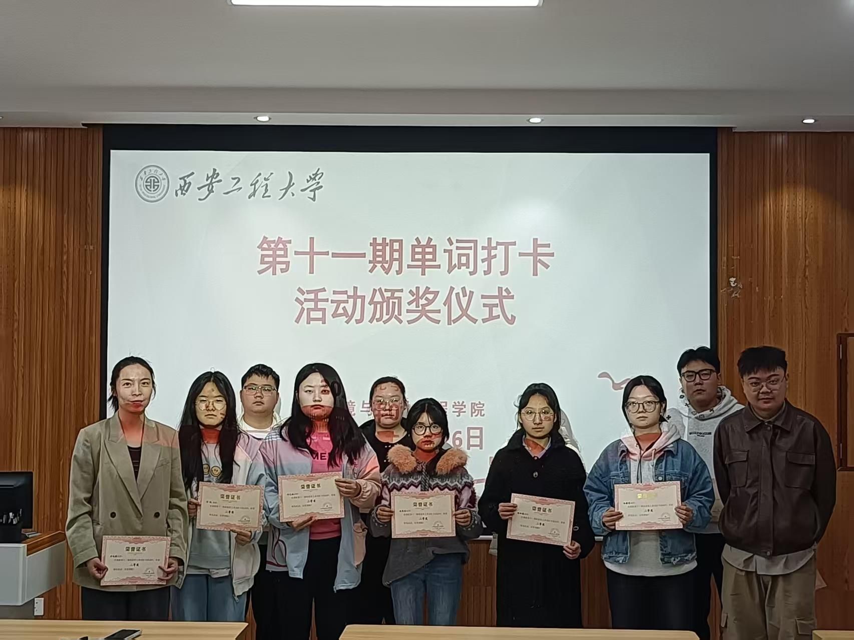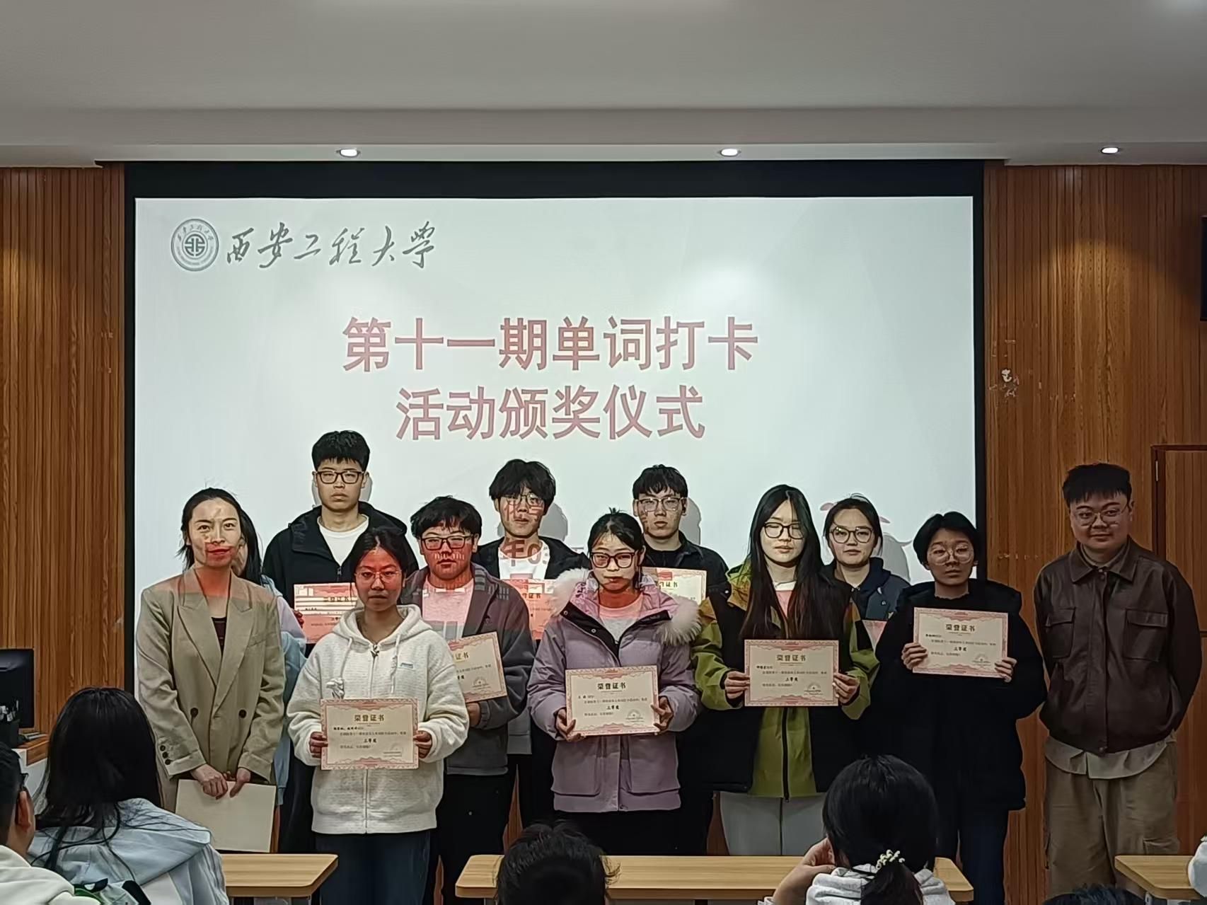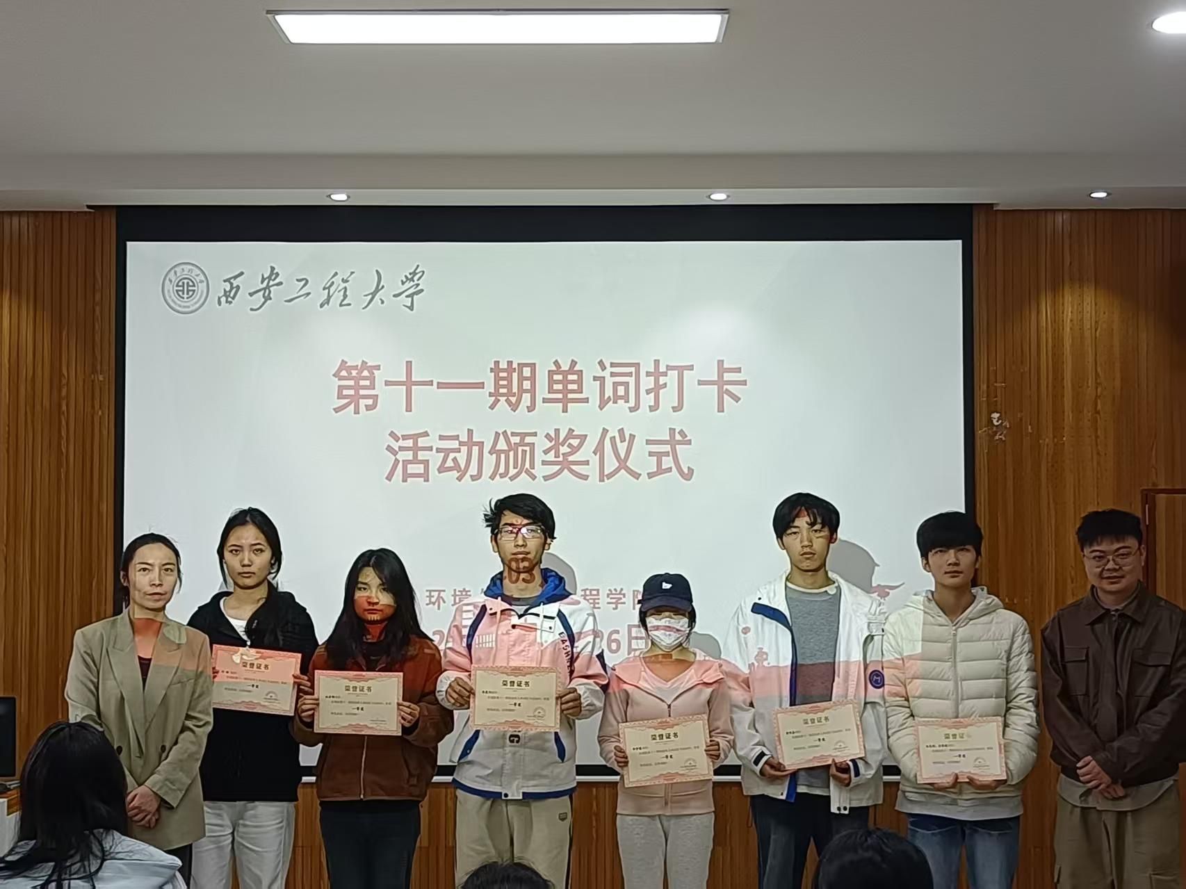 3月26日,西安工程大学环境与化学工程学院第十一期单词打卡活动颁奖仪式顺利举行。学生工作办公室主任朱瑾、2025级辅导员吕国正出席仪式并为获奖学生颁奖。