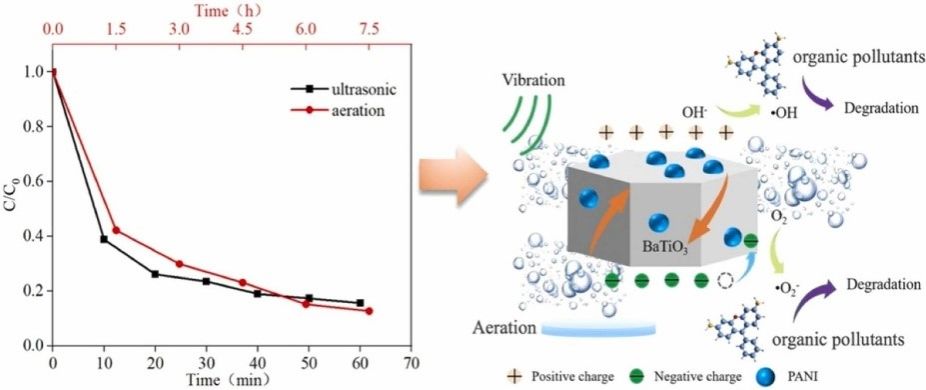近日,我院科研创新团队——环境功能催化与资源绿色利用研究所与陕西师范大学和电子科技大学在Colloids and Surfaces A: Physicochemical and Engineering Aspects(中科院二区,IF=5.4)期刊合作发表题为“Efficient piezoelectric catalytic degradation of organic pollutants by BTO@PANI via ultrasonic enhancement and energy-saving aeration”的研究论文。环境与化学工程学院洪思奇博士和研究生范保喜为共同第一作者,洪思奇博士与武峥教授为共同通讯作者,研究生程晓越、环境工程专业大四本科生高赫为共同作者,西安工程大学为第一单位。该工作得到陕西省自然科学基础研究计划、生物资源开发与纺织废水处理创新团队和“纺织印染废水处理及回用”陕西省高校重点实验室的支持。
